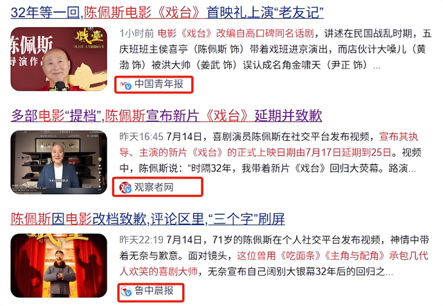 7月14号晚上,北京首映礼刚结束,陈佩斯亲自出镜在短视频官号宣布:《戏台》原定7月17日上映,硬生生被挪到了25号。理由?排片被挤没了。
